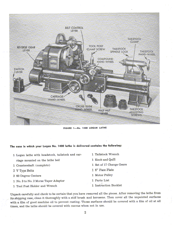 This manual covers all 400 and 1400 9" Lathes. For the "9B" series, order PL-02