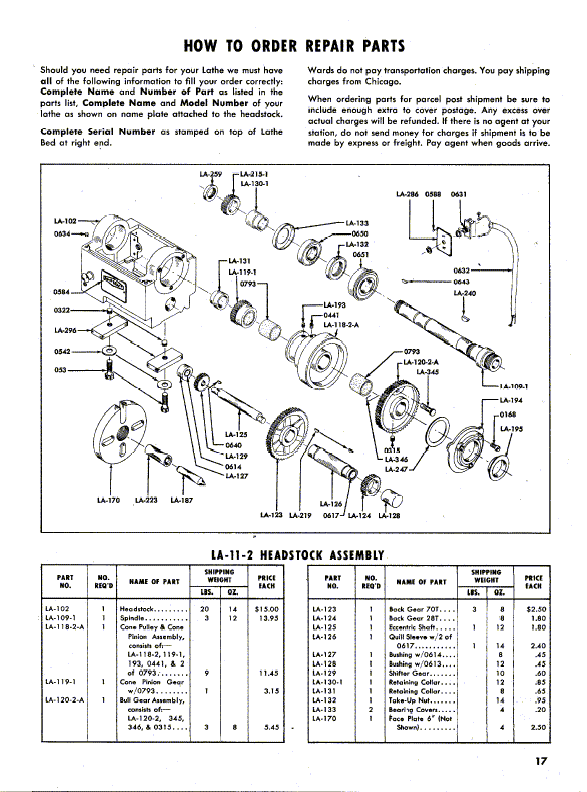 Parts List & Instructions For Wards 2130/2136 Series Lathe