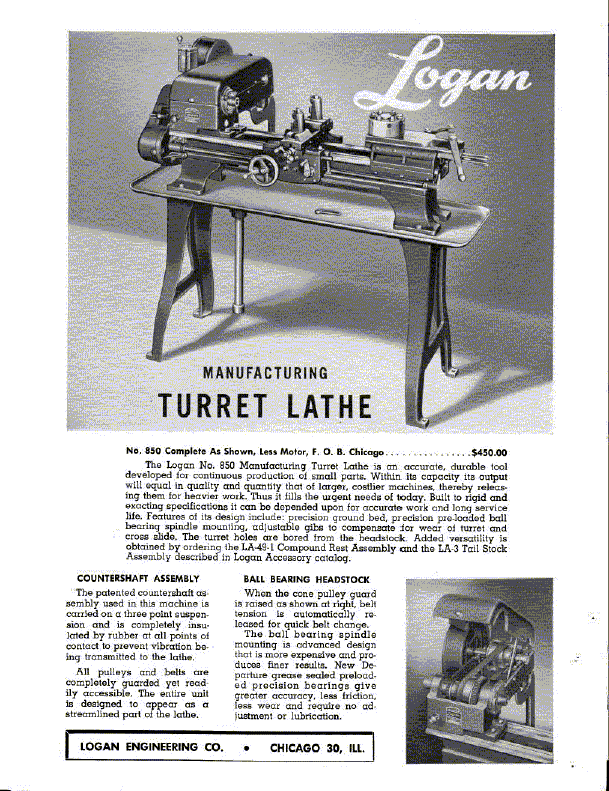 Parts List & Instructions For 830, 840 & 850 Lathes