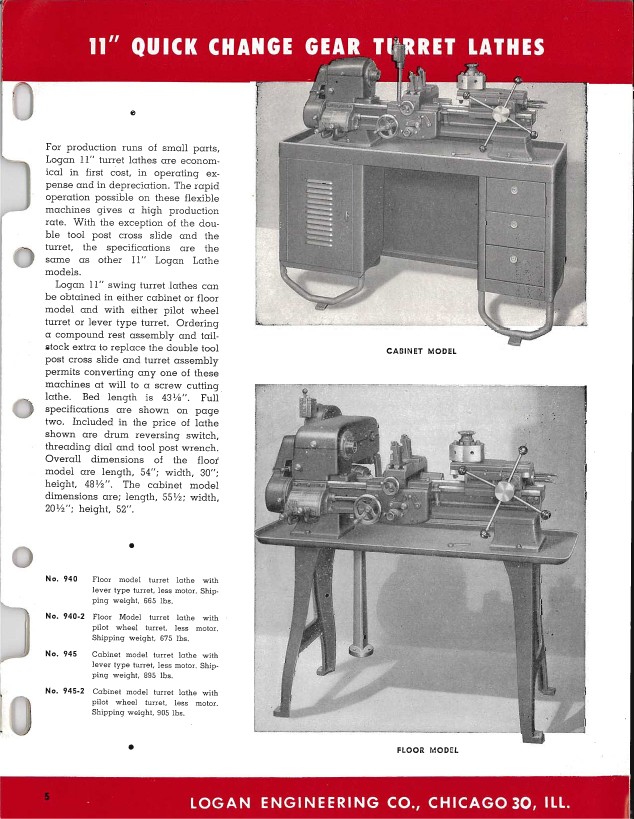 Parts List & Instructions For 935, 940, 945 & 950 Lathes