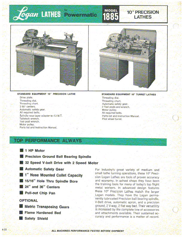 Parts List & Instructions For 10" & 11" Powermatic Lathes
